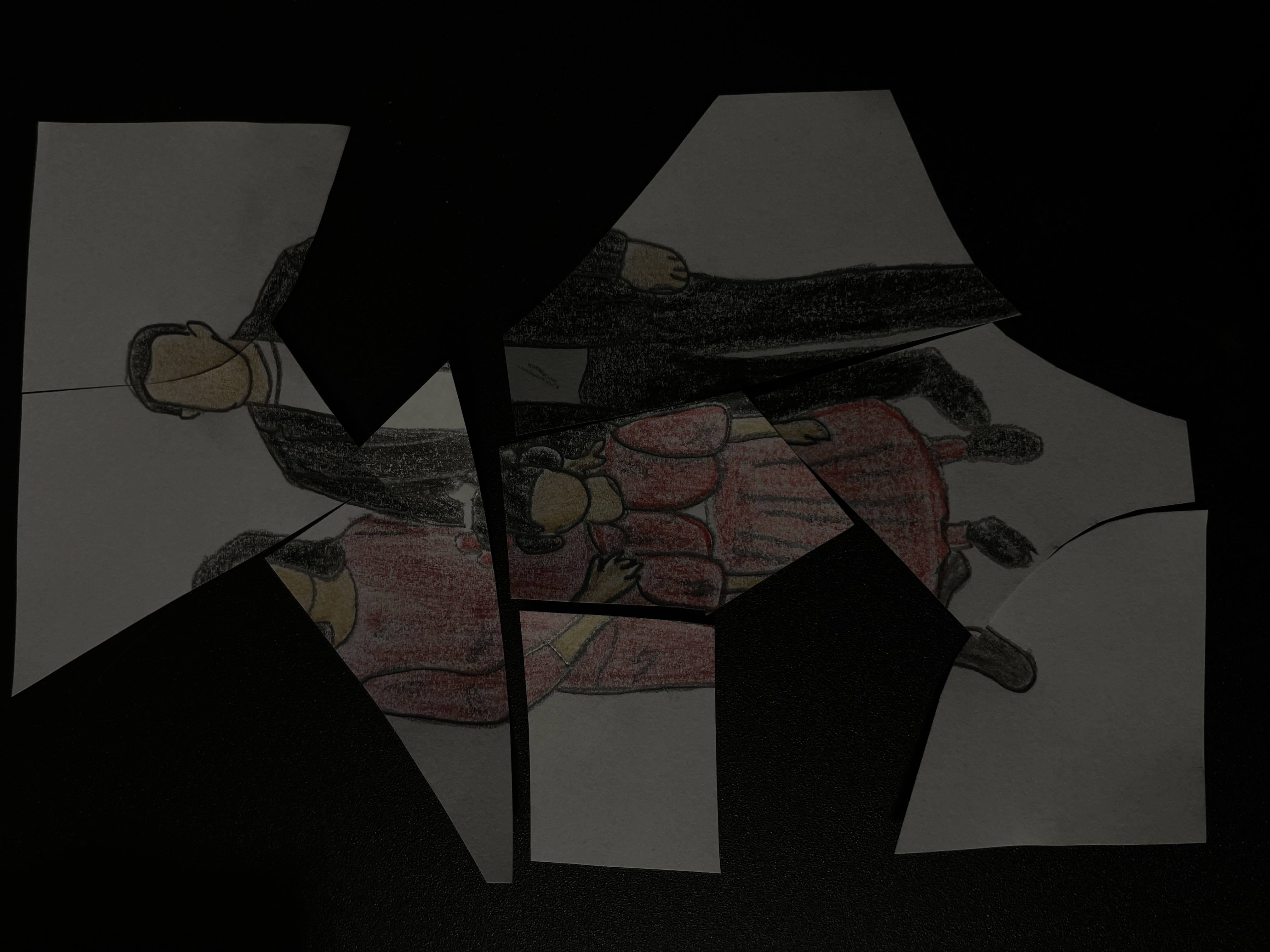 This is my art piece. What inspired me to put all these components together to make this final product was the quote in chapter 7. “ Where is she? What have you done with her? There was no night or day: only a flickering. After a while, there were chairs again, and a bed, and after that a window. She’s in good hands, they said. With people who are fit. You are unfit, but you want the best for her. Don’t you?” Pg. 39. This quote is Offred having a memory of her daughter. She visualizes the people who took her daughter, and she imagines them saying that she wasn’t fit and that now her daughter is with a fit family. I chose this quote because I felt like it was a good quote to express Offred’s emotions. I also feel like her daughter is a key person in this chapter. A breakdown of my art piece is a photograph of Offred, her daughter, and Luke. The deeper meaning and idea of this is that the photograph signifies her memory, which could be due to trauma or drugs, and the person in this specific quote was her daughter, but Luke also appears throughout the book. As you can see, the photograph isn’t complete. The reason for this is that, as we have seen throughout the book, Offred has vivid flashbacks but doesn’t completely remember. This signifies trauma and memory loss, which prevents her from remembering everything. And the pieces that are present are the memories that she remembers. In this chapter, it’s the memory of her daughter and also her mother. She talks about her mother saying, “or in a park somewhere, with my mother. How old was I? It was cold, our breaths came out in front of us, there were no leaves on the trees: gray sky, two ducks in the pond, disconsolate.” Pg 38. It’s memories like this that make my art piece come to life. Another definition of the photograph is that it represents the destruction of Offred’s family. The second part of my story is the black background. I didn’t take this picture with a black background just because. In my art piece, this background signifies the emotional distance and the unreliability of her memories, the reason for continuing to fight and staying alive. It also represents the memory of her daughter being particularly painful. Overall, the main concept I want viewers to get out of my artwork is how Offred went through a mental warfare to remember some of her memories, but she struggled to regain all her memories due to her life events and trauma. She also remembers her daughter, but the thought that her daughter was taken away from her still haunts her. She doesn’t know when she’ll see her daughter again and doesn’t even know if her daughter is alive. But the thought of her family is what’s keeping her moving forward. Although she´s unsure, she still has a bit of hope and faith that she’ll reunite with her family and that her daughter is waiting for her.