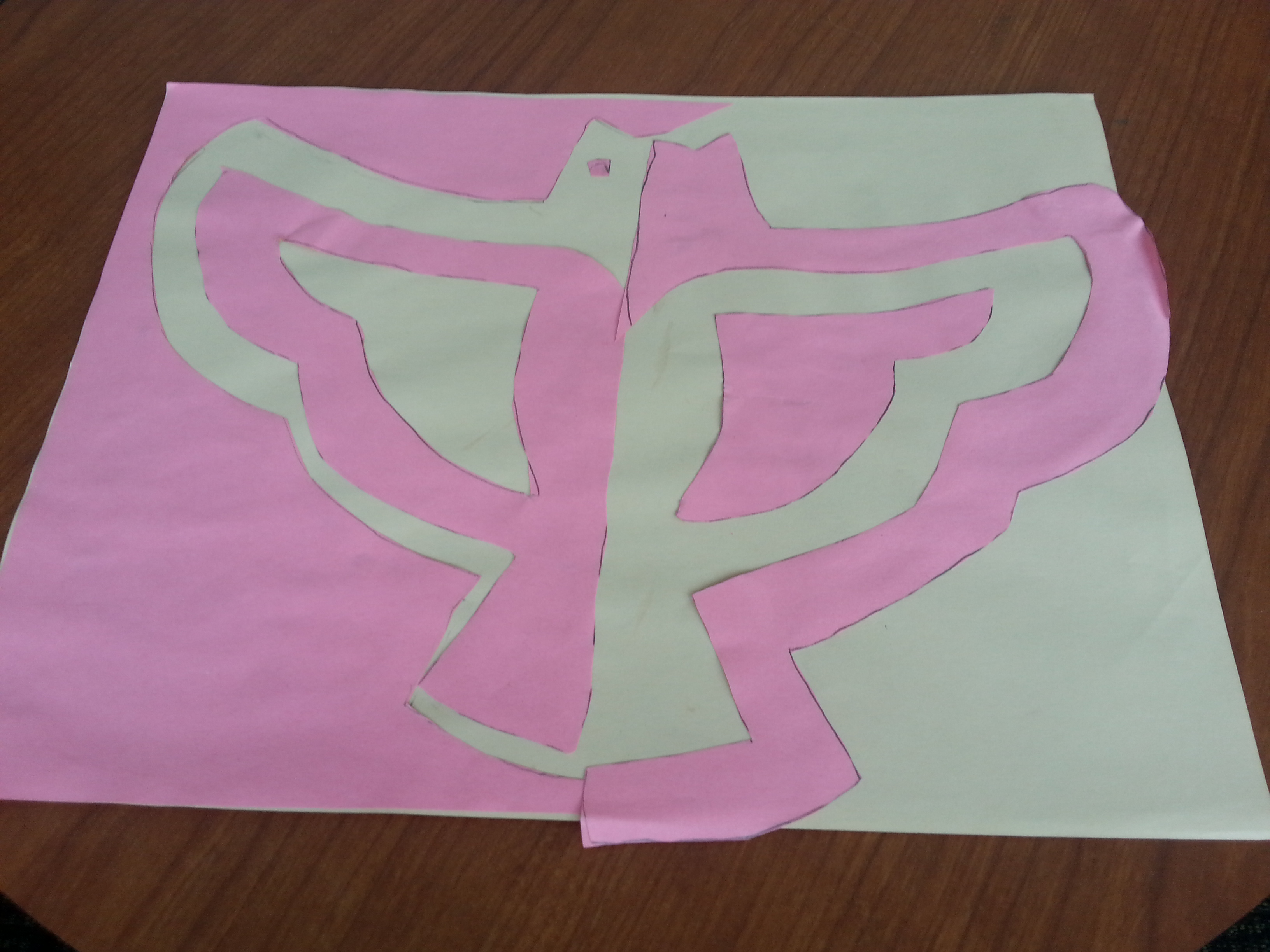 1. In my cutout, I was able to find the negative space by looking at the stencil and identifying the two different colors. Based on those colors, I could see that the white shapes were the negative space and the dark grey areas were the objects. This helped me figure out what I should cut and how it compares/fits in with the other spaces.