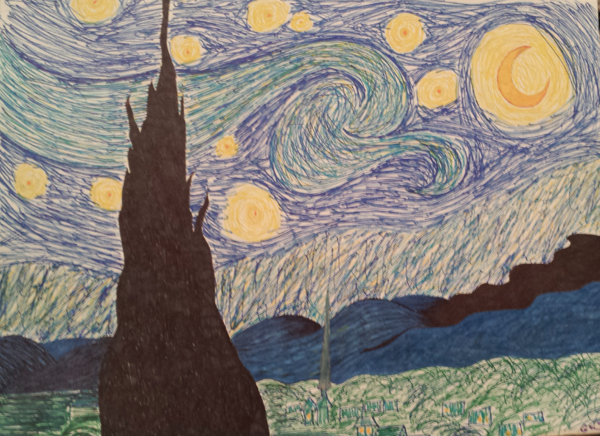 If I did this assignment again, the thing I would do different would definitely be keep better care of my paper. Though I made sure I didn’t rip it severely or sit on it, or put it in my bag, I rolled it the wrong way multiple times, which put the drawings on the outside which made a lot of dirt marks, and ripped it on the edges, too. Though I cleaned and taped as best as possible, it would’ve been in my best interest to have taken better care of it.