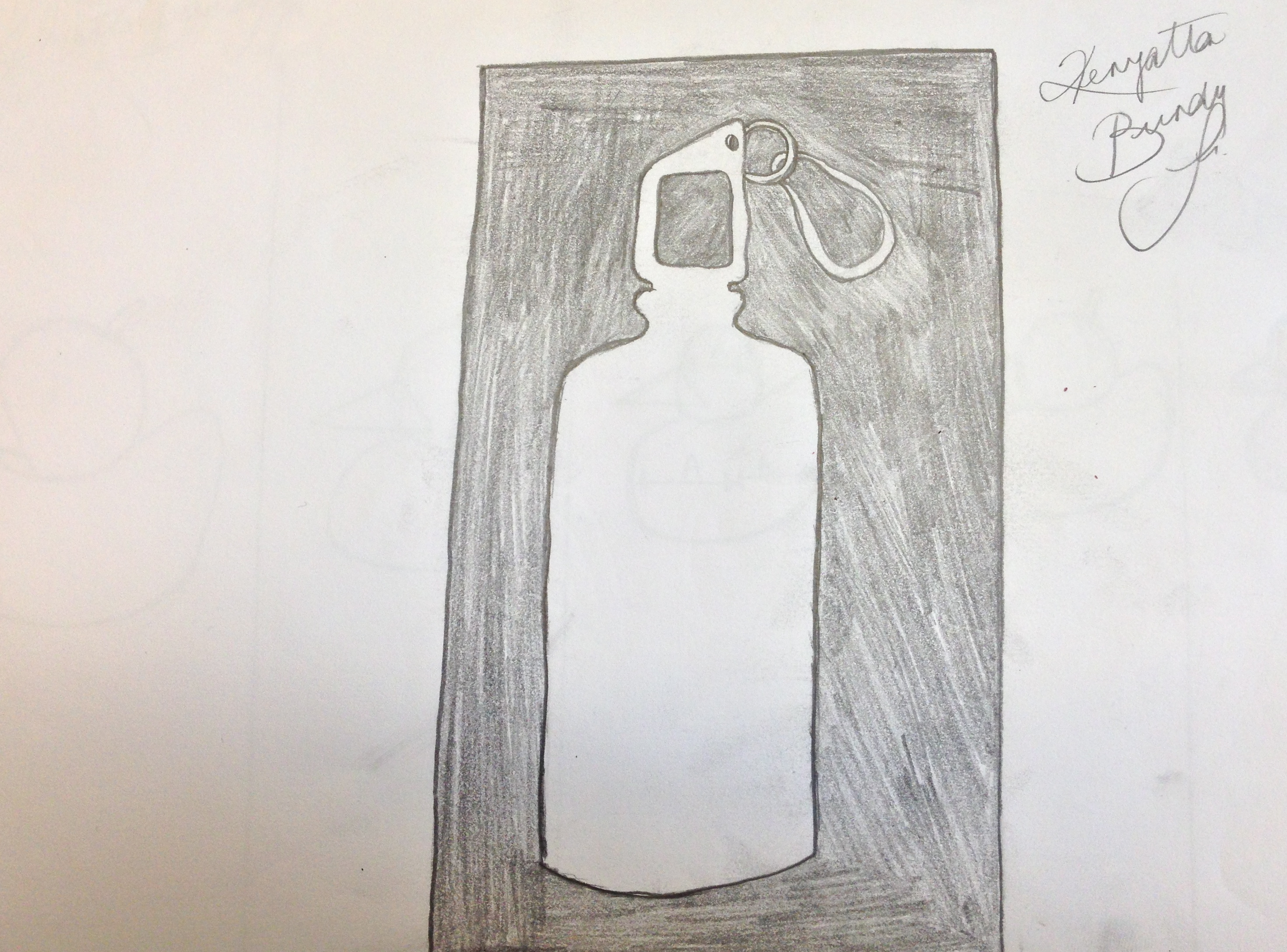 What I would like other people to understand about my art work is that it was one of my first drawings when the focus was negative and positive space. I feel that I have learned many different things about this drawing. If you are able to imagine this image in your head of an object you can identify the negative and positive. The focus point in this object was the outline of the object and the space inside of that object. The goal was to make the positive space seem as if it pops out against the negative space. I feel I have accomplished my goal.