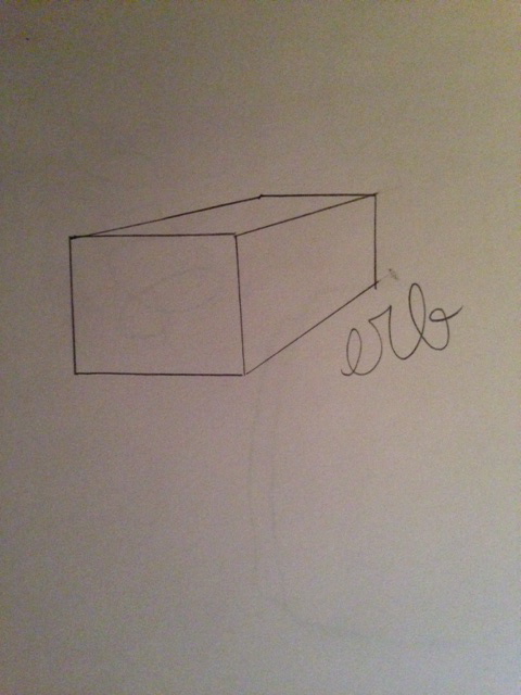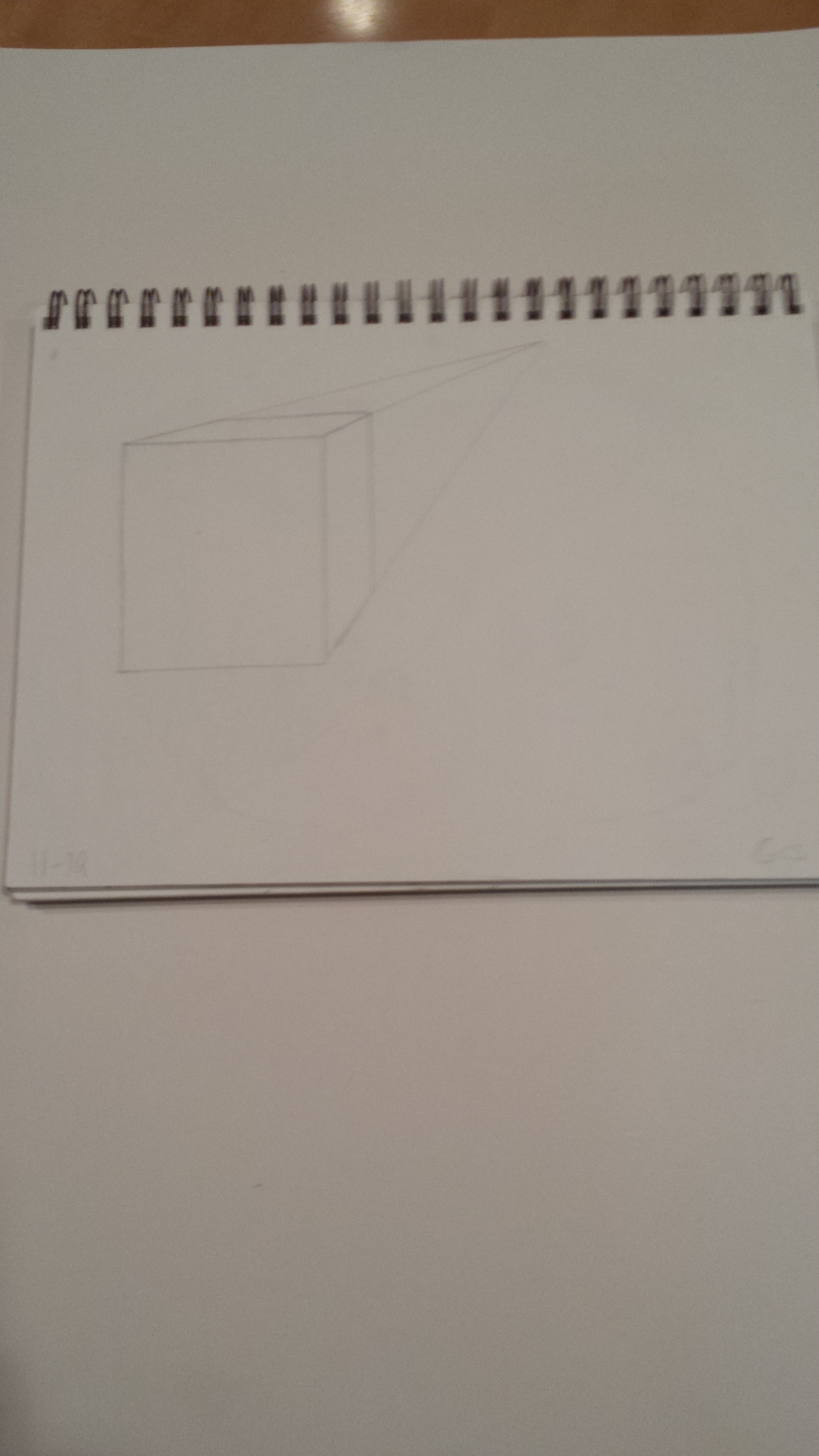 The VANISHING point! All i had to do was put a vanishing point and then draw what ever I wanted to draw away from it. Then, I had to connect the pieces to from the vanishing point to the thing I wanted to draw. Since that sounds so complicated, I did the easiest thing possible. A box.
