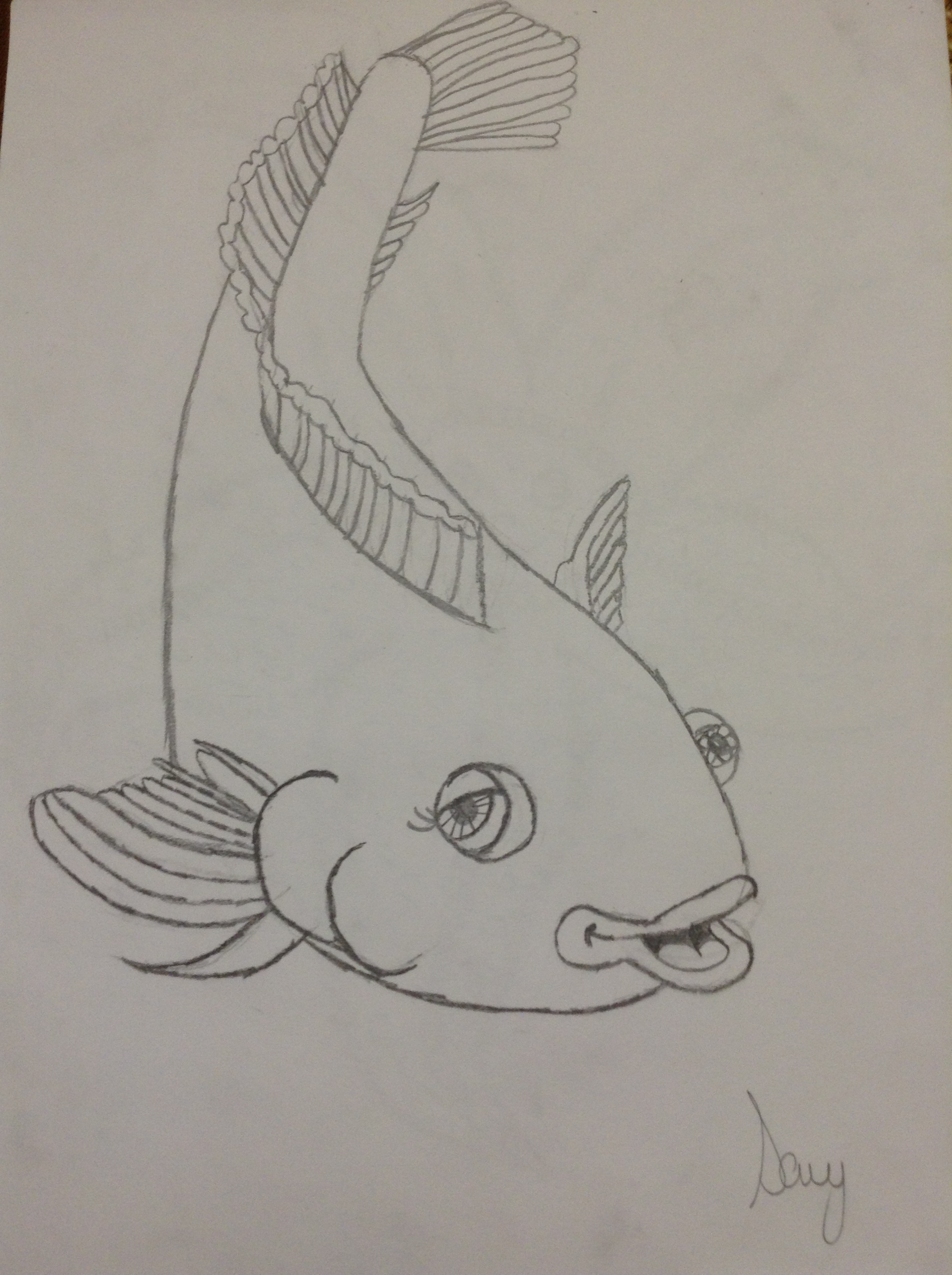 I drew this fish sexy. (LOL) I know I messed it up, but I kept it the way I drew it anyway. I liked the way I drew my fish better so I didn't throw it away like I usually do with other drawings that come out wrong. I had to give myself a pat on the back with the attractive looking fish.