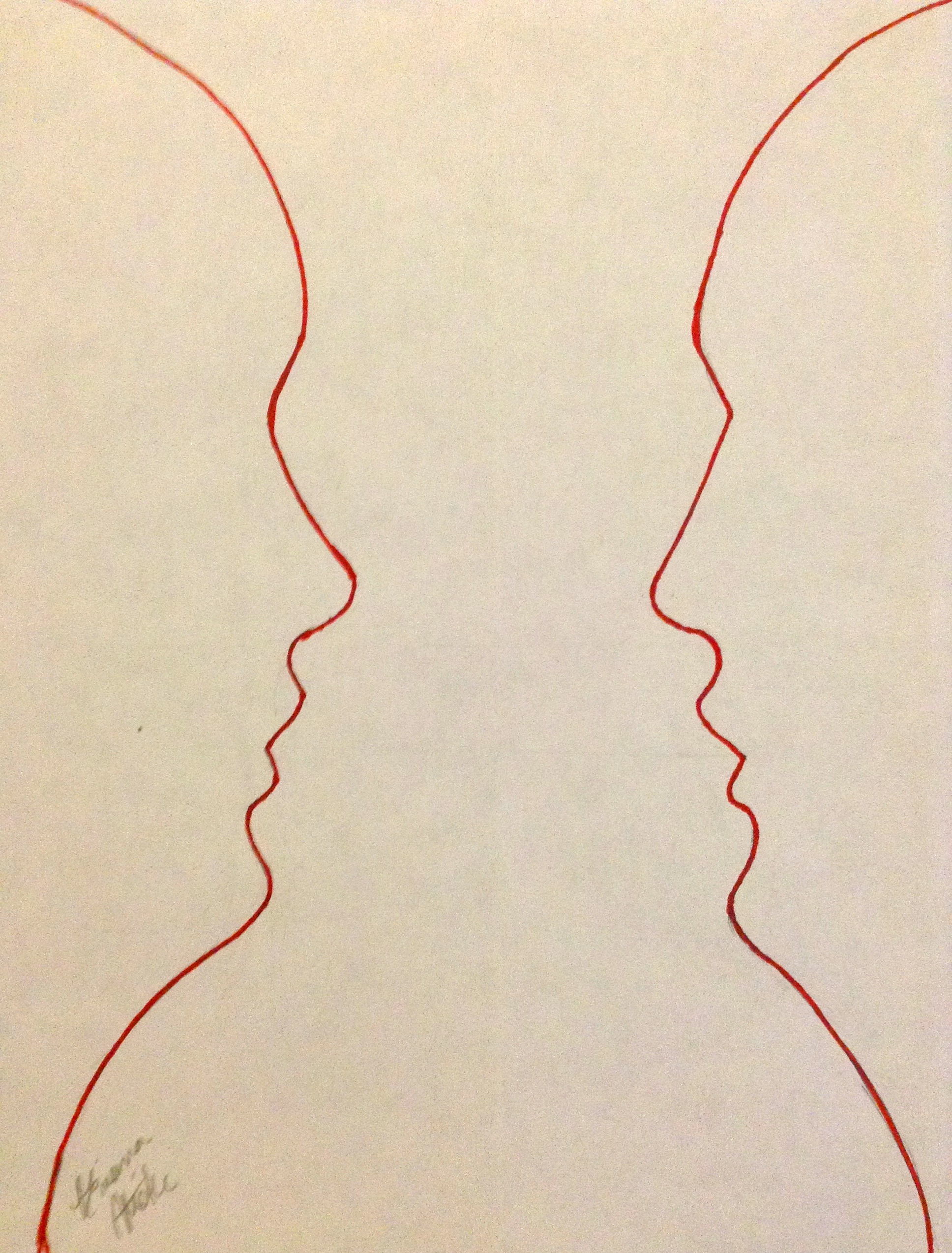 This had me for a bit of time. It didn't take long, but it wasn't as short as I thought it should have been. I had to make sure both sides was the same size with everything. If it wasn't, it would have messed up the picture as a whole. Since it was symmetry and delusion, it had to be right to make you think, "Is it 2 faces, or a vase?"