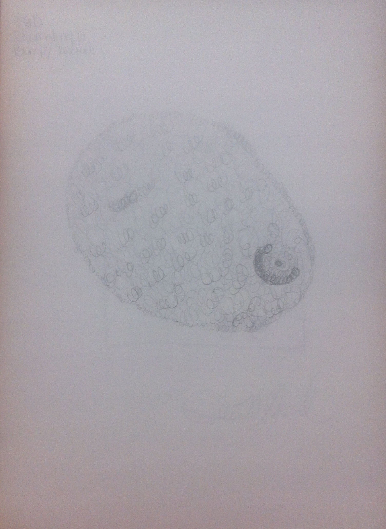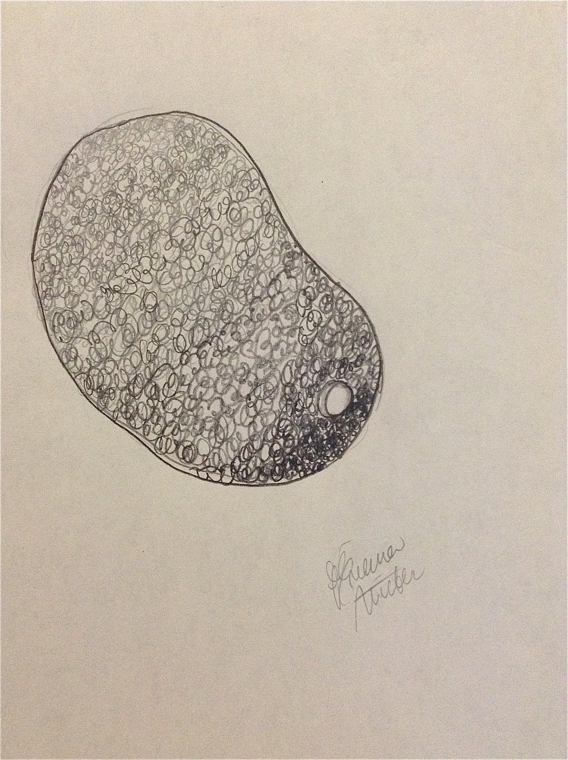 With this one I had to draw without looking at the paper. I had to focus on the object I was looking at only. I was surprise how close I was to having the bottle I drew right. I'm not good with not looking at the paper nor memorizing how something specific looks so this was a nice challenge for me to do.