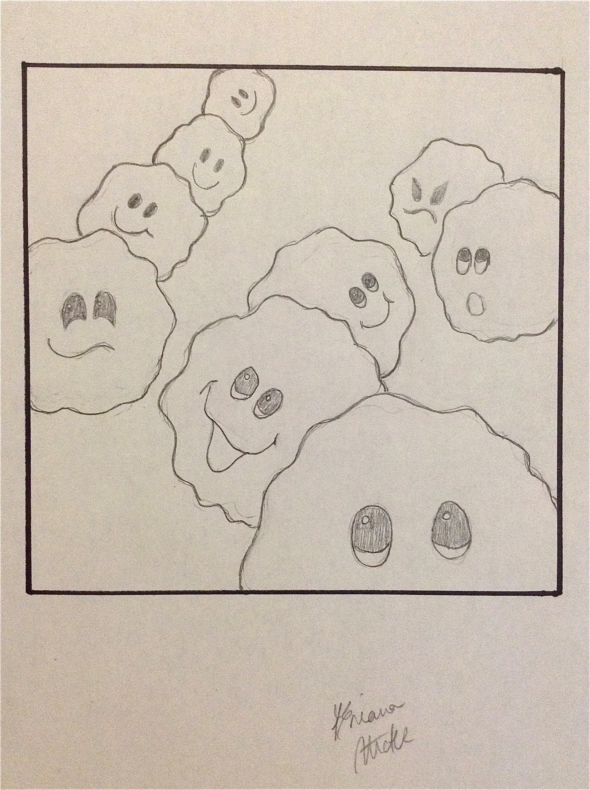 I had to draw myself. I didn't like it at all. I hate drawing people because I know I'm not good with it at all. The fact that it turned out pretty well made me a little proud of myself. I took my time with this one so I think my effort in it came out greatly.