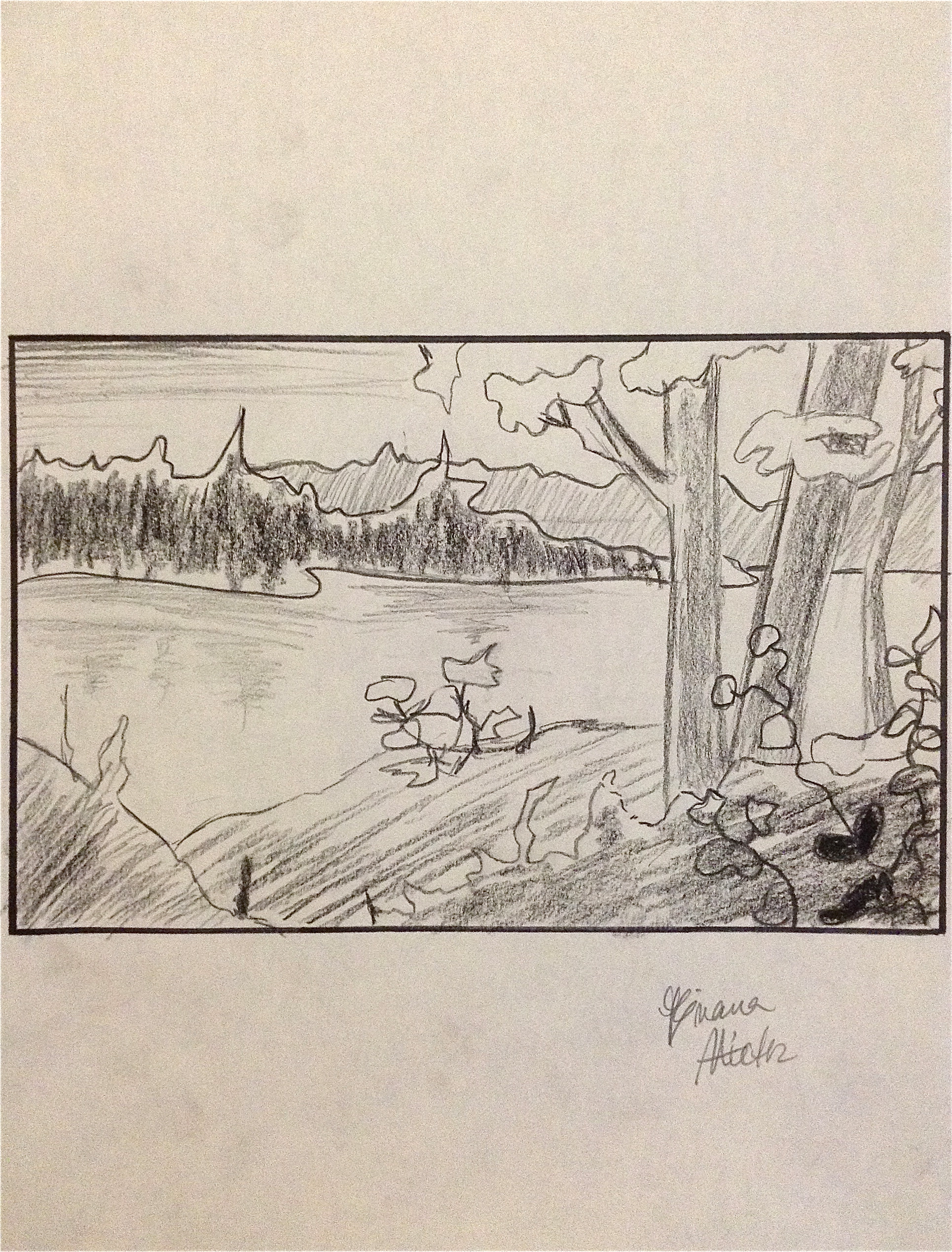 More mountains! I had to draw them and then shade them if 4 different shades. This wasn't to hard to do either. Just more lessons on shading and the different kind pencils you can use to achieve the shades.