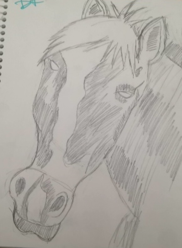 Everyone loves horses right? I liked drawing the horse, but I hate drawing animals. I should probably say that I don't like drawing real things(?). I enjoy drawing cartoons/anime so drawing things out of my comfort zone is a little bit more challenging in my perceptive.