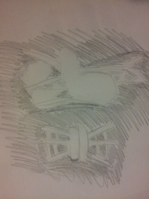 Drawing is located below text of poem.For the digital story project, I wanted to take the opportunity to write something that I’ve been meaning to for a long time. In grade school we had an assignment to write a poem. What I ended up writing was dark and strange, much unlike what my other classmates had written. Though most of the details of the piece have been lost in the past few years, I can still remember being extremely proud of what I had written. So for this project, I’m going to try and recreate the poem from the few details I do remember.