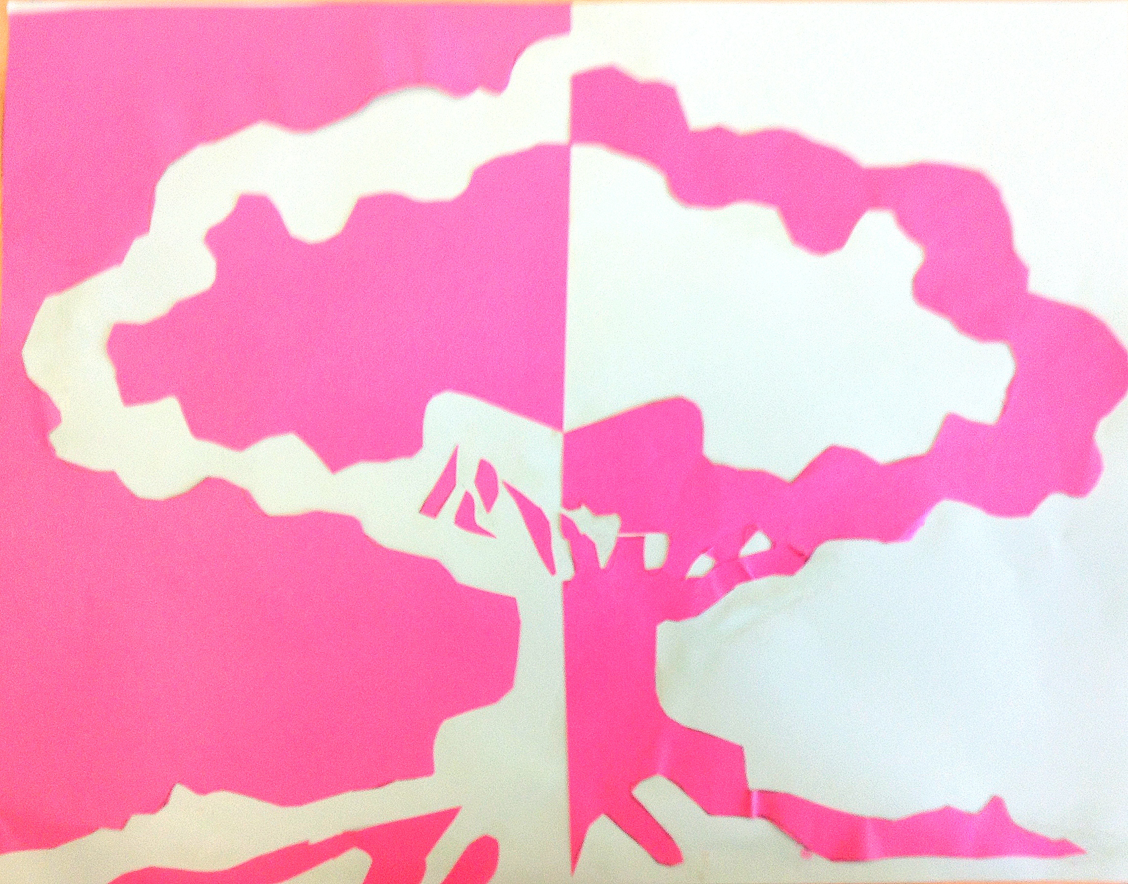 I found negative space by first drawing the outline of each object I saw. For my negative space cut out project, I chose to do a tree. I cut out the half of the tree then I used the excess cut outs for the other side.