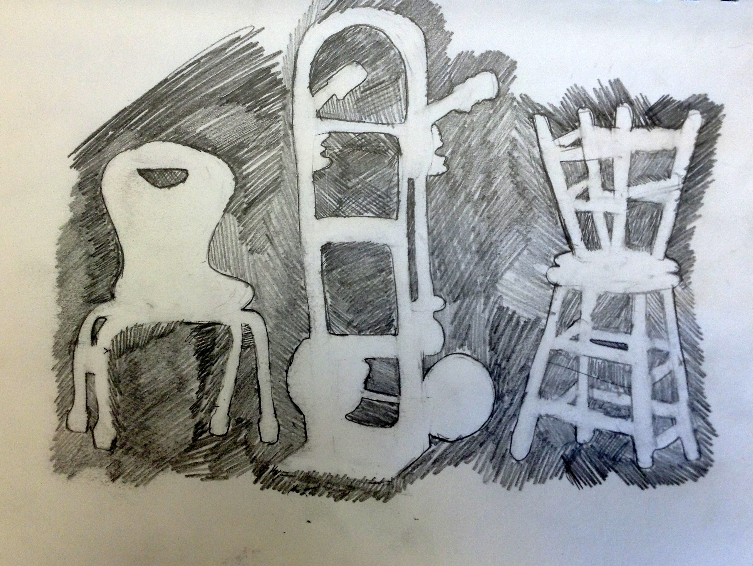 In my still life drawing I found the negative space by not focusing so much on the actual chairs, but the spaces in and around the chairs. In the cut out I looked at the template and focused on the lighter shade of gray and used that as my negative space.
