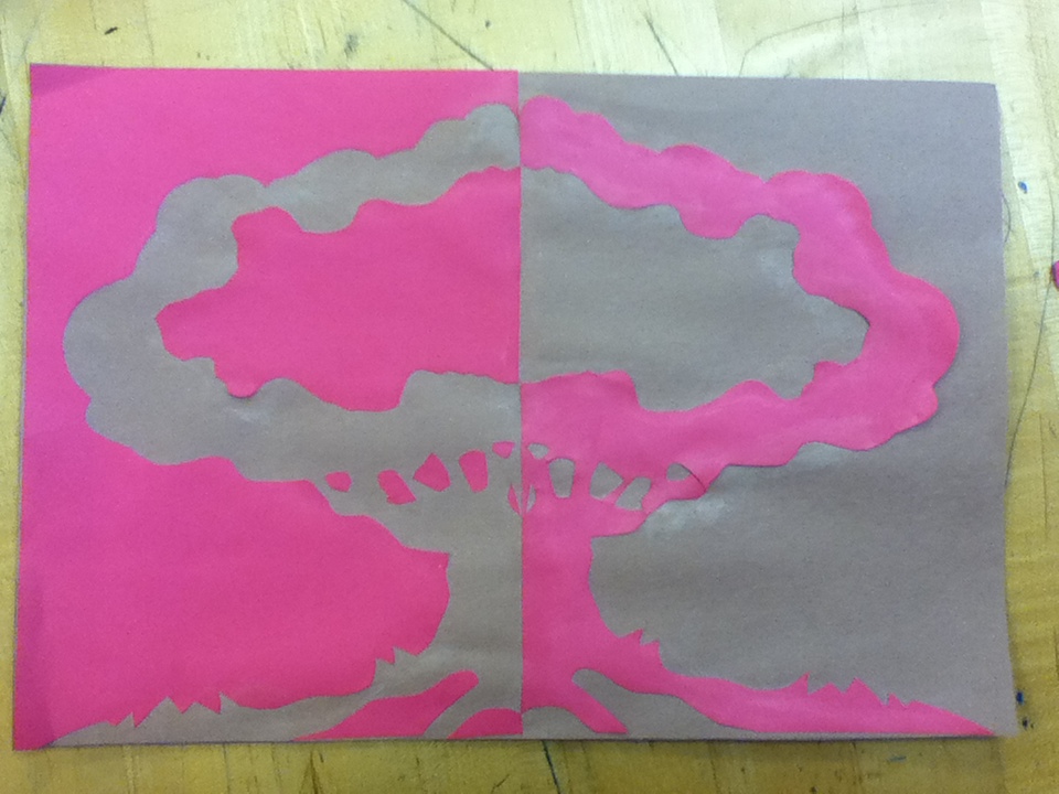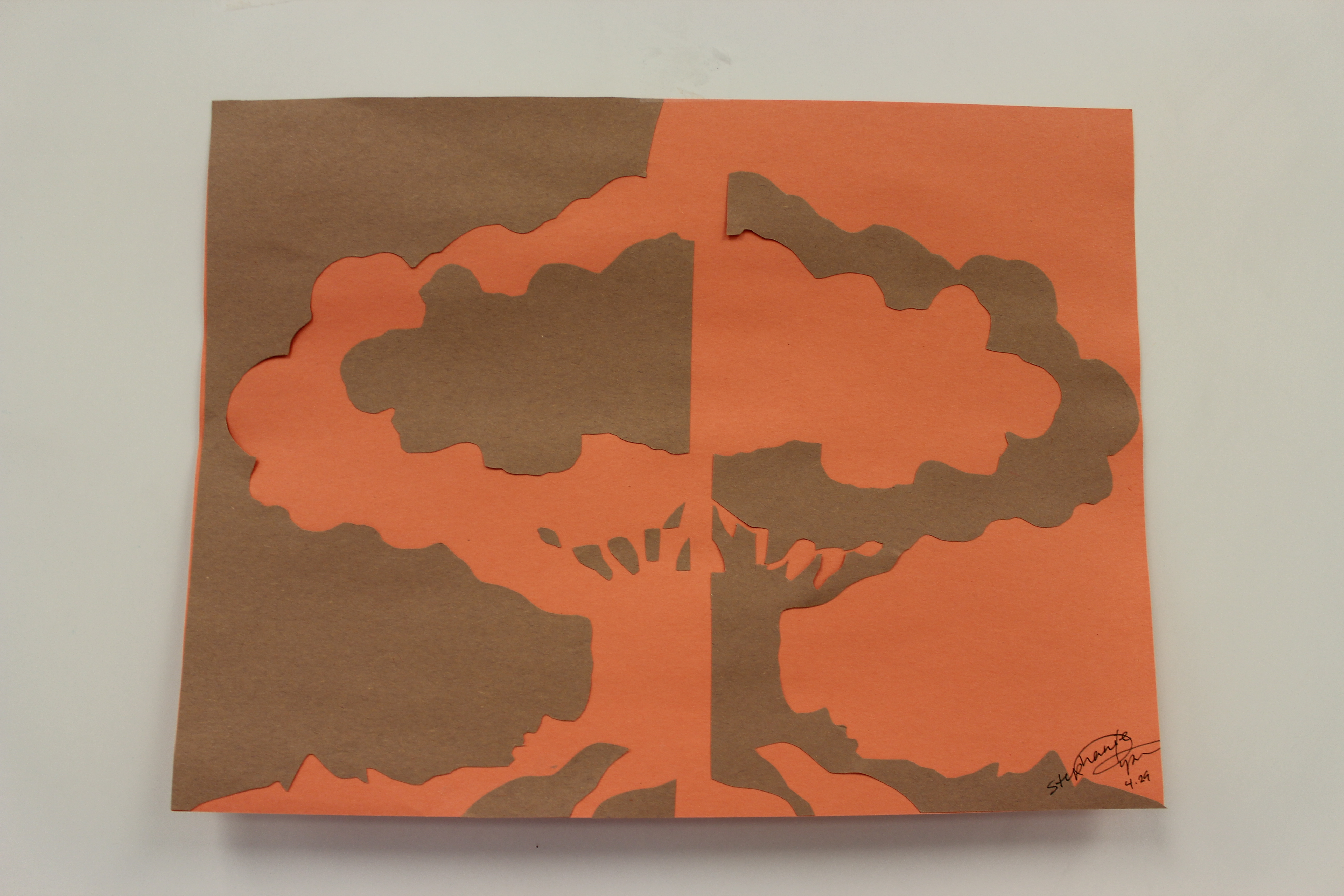 B: Explain how you found negative space in 1. your cut out?, 2. in your still life drawing? 1: The cut out was more of a positive/negative space combination. The negative/positive boundary was used to show detail. Being symmetrical, the drawing had every part negative, but half of the parts were on one side and the other half on the other. 2: In my still life, I found negative space to be anything that was not the background. The stools, the chair, and the other thingy were all white and everything else was black (I did not have time to shade everything).