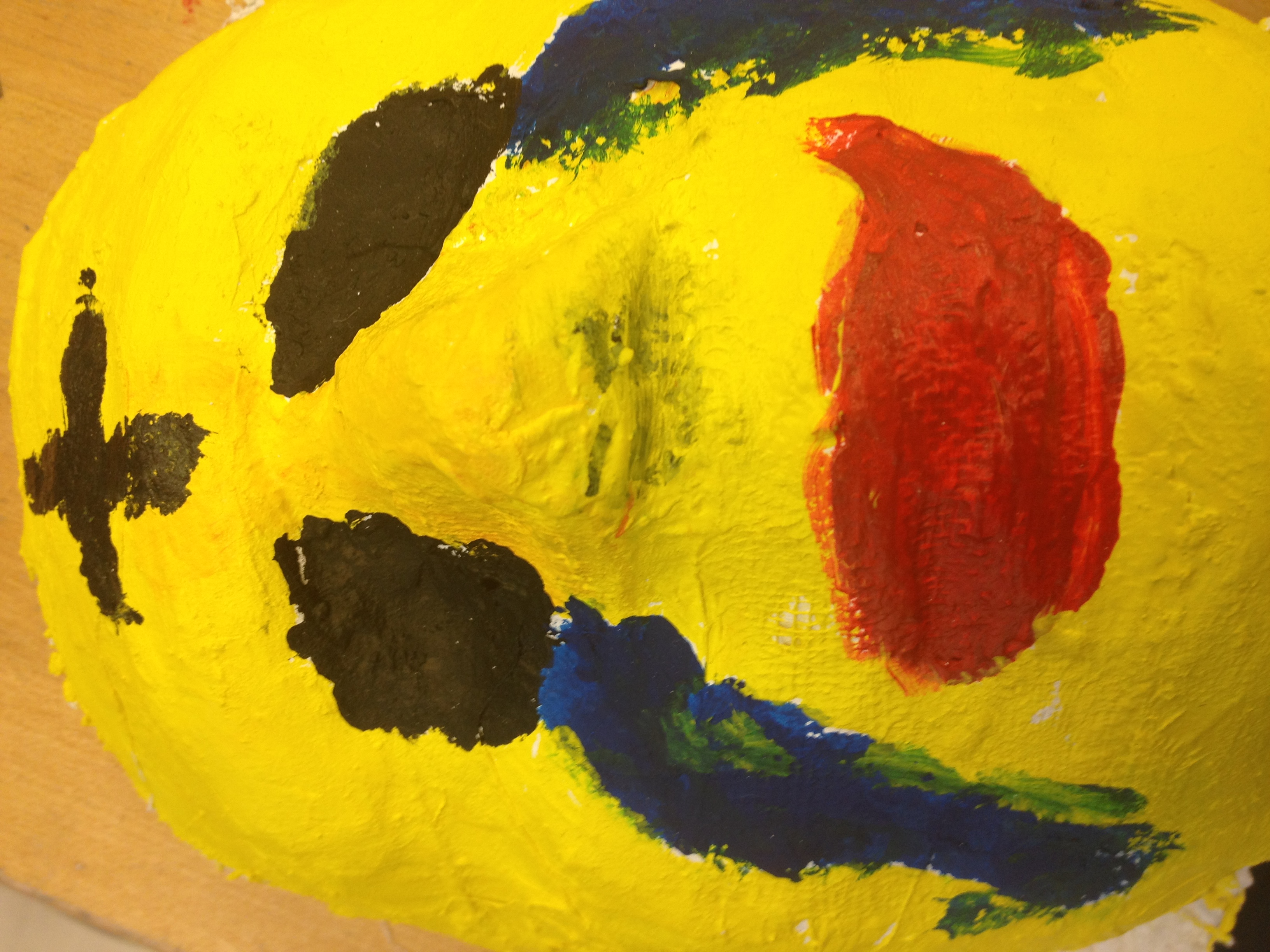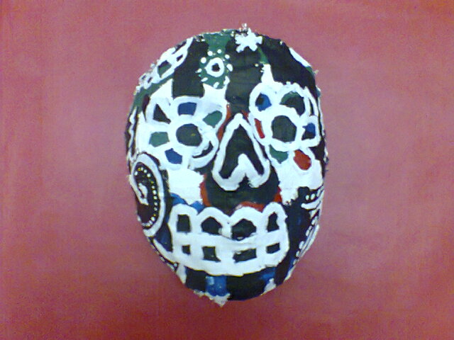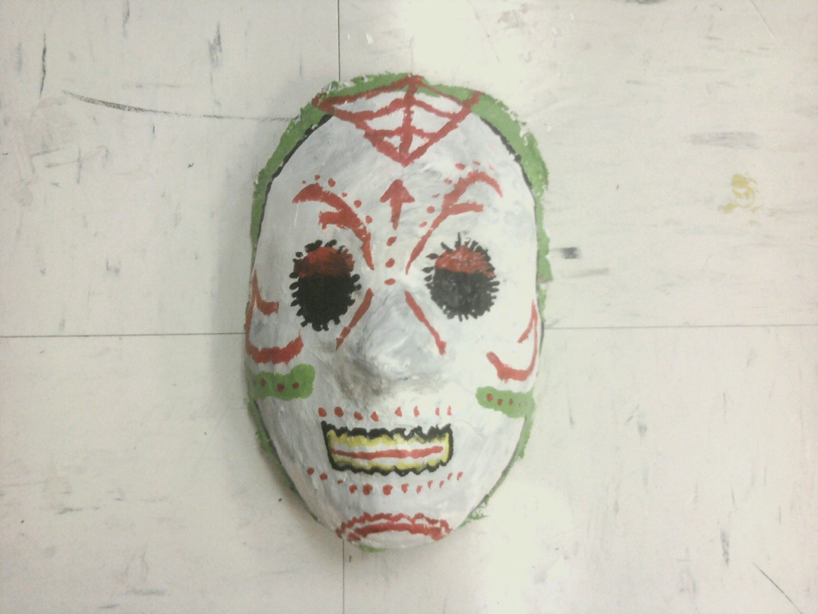 The process to make this took awhile. We had to make a plaster mask out of the material casts are. I wasn't comfortable using my face as a plaster mold, so I used a fellow classmate to model for my mask. After the mask was completed and dried, I was a bit iffy on what colors I should use. I first went with red for the background, but I quickly changed my mind and painted the red over with maroon. I forgot I had to make the mask like a sugar skull, so I repainted the mask completely white and did my current design. It didn't really resemble my sketch, but I still thought the mask was pretty.