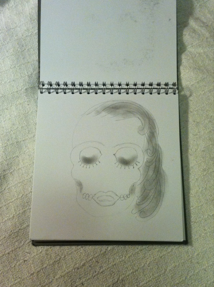 I came up with the design of my skull by using several sugar skulls as a reference. Sugar skulls usually have a lot of floral and plant aspects, with lots of bright colors. They tend to look feminine, with lashes on the eyes. So I made the eyes big and round with lashes. Since sugar skulls are supposed to be colorful, I added some floral decorations on the side and on the top of the skull to make it more colorful.