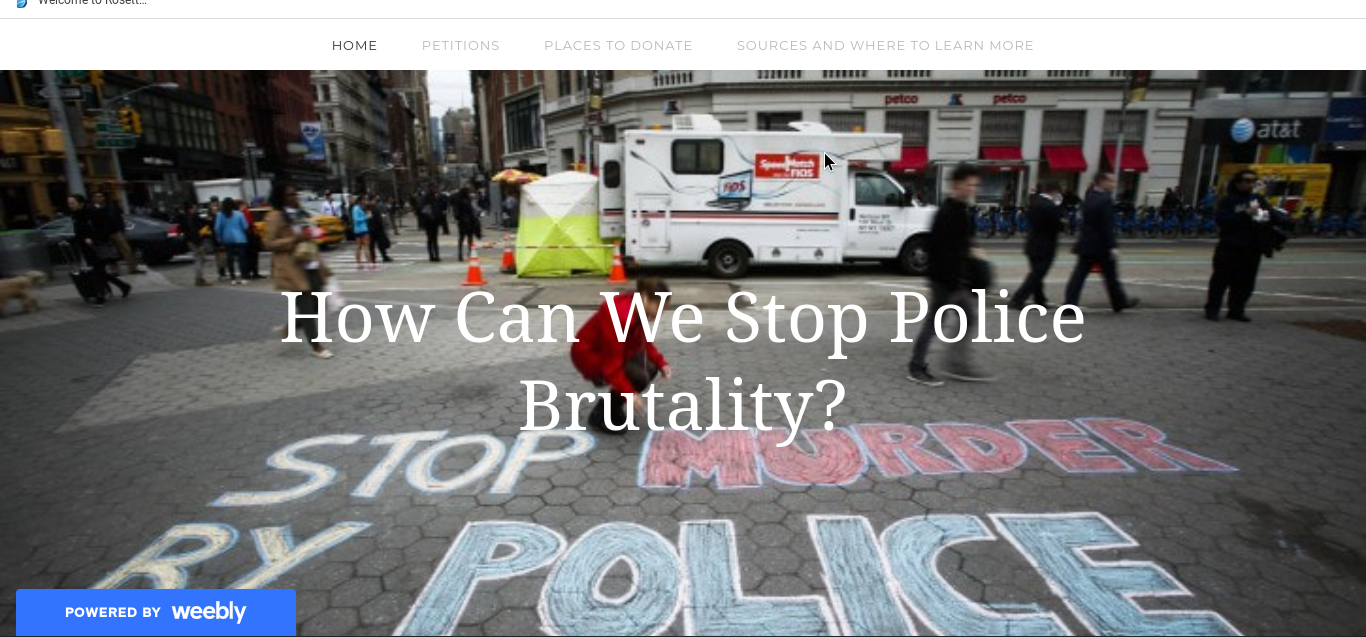 I learned a lot during this project. I learned a lot about police brutality in general, and it’s terrible effects. I also learned about the big question; how do we stop police brutality? I hear frequently “defund the police” and “police reform” but not actually how to do this and what steps to take. And I’m happy to say I learned a lot of ways to do this properly so that communities and people get the support they need. I felt like researching this was my point of pride in this project. It really is a really interesting topic thats so important. What I liked seeing in other people’s projects is what interested them or what they’re passionate about. Just their choice in their topic alone is interesting. What I felt that I could do better is time management. I struggle at many points to get it in on time. All that is left for this project is hopefully more people click the link to my website so they can learn more about how to stop police brutality.