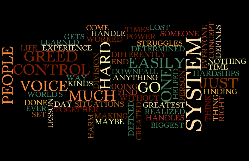 Another thing that this year has taught me is that systems are created and defined by the people. The first time this really came up was during a journal entry where we read an excerpt from bell hooks. In the excerpt she talked about language and how it was a place of struggle and domination. She speaks on the power of words and language and how often they are undermined. While we were reading through the excerpt we had to pull out quotes that stuck out to us and respond to them in the journal entry. While responding to the quote “It speaks itself against our will” I mentioned “...nothing is done without someone making it that way...”. This was the start of my bigger understanding on how systems work. My understanding grew even farther when we did the cortez trial and the sweatshops trials. Throughout the trials I saw that the system could not be at the most blame because it was only made by the people and that the system can and has changed over time. It was extremely difficult to prosecute the system because we all knew that we were the ones making the system and could not get past that idea that was stuck in our heads. The systems errors were most prominent to me during the Sweatshops Trial. The blame would just go in circles. The system is what the circle is, the ruling country elites were seeing it as their only option to provide for their country because of how the multinational corporations made it. The multinational corporations continue to make it that way because consumers continue to buy the products and they continue to make money off of it. The workers themselves can’t even be said to be completely innocent. They continue to work under the conditions and do not strike against the owners of the sweatshops. Someone could easily look at this and say that it is the system's fault but when taking a deeper look you see that the system is run by the people and only with the change of people can the change in the system be made.