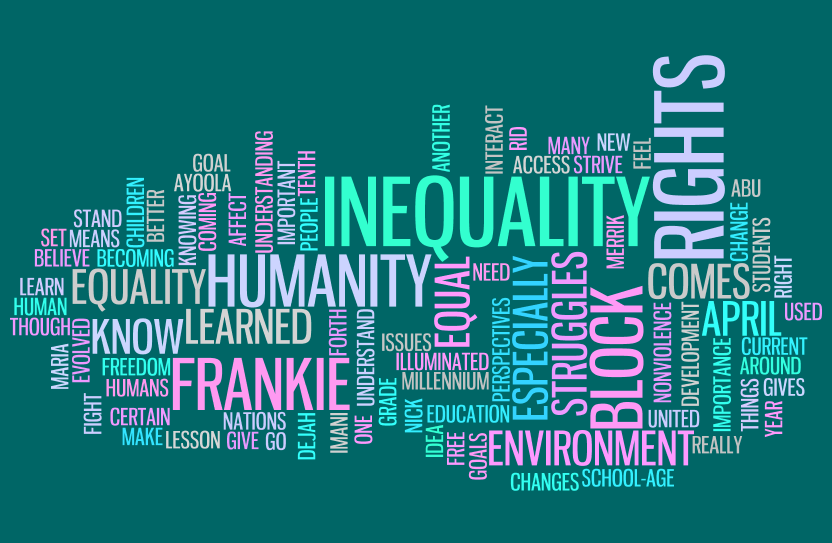 In tenth grade, students go through many changes as they learn where they stand on certain issues. It gives them a new understanding of themselves to know and understand where we each are coming from, what perspectives we know we can give, and who we are becoming in our current environment. This year, I feel as though I have evolved through means of knowing better who I am, and how I affect and interact with the people around me and with the environment. A few of the most important things I believe I have learned are, for one, the importance of nonviolence used to make change, and for another, how with freedom comes struggles, and with struggles comes an inequality that we have to fight to be rid of. I learned about the Millennium Development Goals set forth by the United Nations, especially the goal that all school-age children should have the right to free education, and have access to it. This lesson especially illuminated the idea of inequality and how we really need to strive for the equal rights of all humans.