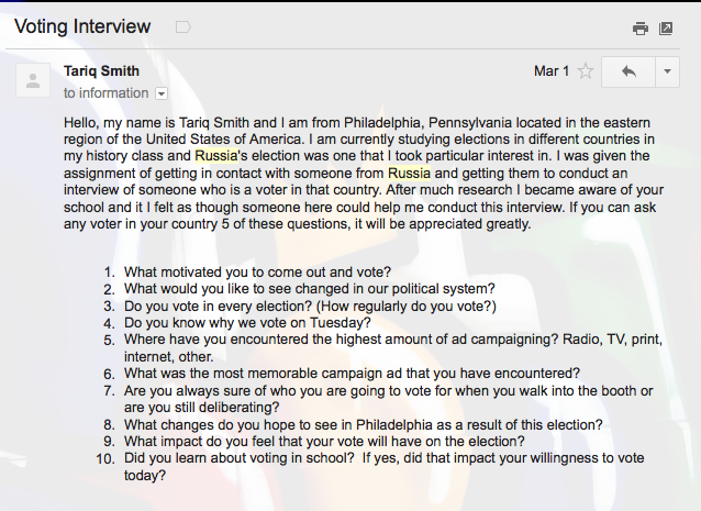 4. Once she agree to do it on April 20th, we sent her the questions.