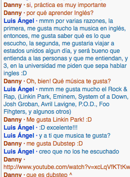 He wasn't very good at english and when speaking to him he didn't seem to practice his english, rather he spoke spanish the whole time. He wants to learn english because he likes our music (eminem, linkin park, etc.)How did this interaction help you move towards achieving your personal goal?