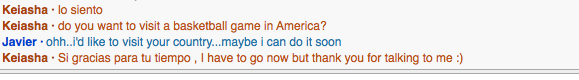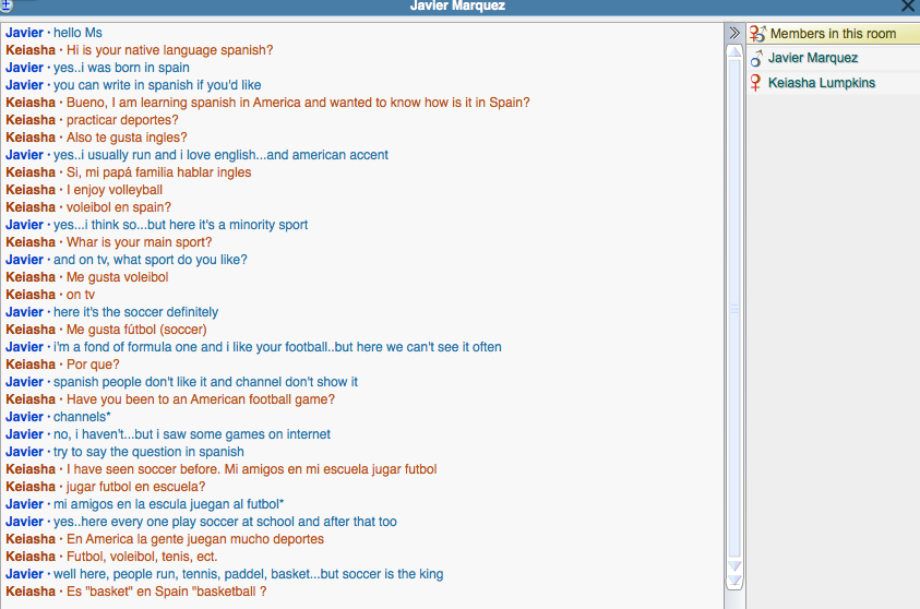 I was able to learn so much about different types of sports in Argentina and the role it play in the lives of an individual. I also able to utilize all the pre-conversation questions to guide the conversation in the direction that I wanted. I was also able to share information about sports in America with one. It was a two way cultural learning process.