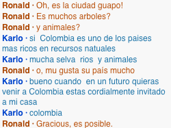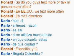 spoke only in Spanish and tried to keep a basic conversation. This needs to change, these conversations are awkward at best and using Livemocha is harder then expected. I want to figure out how to hold just a basic conversation before I try and learn anything about their culture.