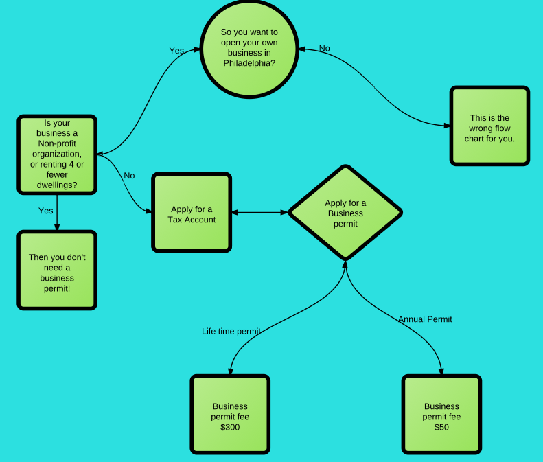 For this project, we researched the process of applying for and getting a business license in Philadelphia. We were surprised to find how simple the process is, as illustrated through our flowchart. The process was rather short, and quite simple for this project. We found a helpful web page created by the city of Philadelphia detailing the steps for getting a permit. Once we had done this, we looked at the form(s) that were necessary to fill out for the business license. I say forms because there are technically two forms for acquiring a business permit, only one needs to be filled out. The forms are a lifetime, or an annual permit, which are effectively the same form, with different fees. We filled out these forms and found them to be very straight forward. There were two parts of the form that confused us that had to do with exceptions regarding whether or not the form was actually necessary, but all in all, it was very straight forward. In agreement with that statement, I can't really think of anything to change with this process. I feel like this bureaucratic process does not reflect the vast majority of processes. Based on my classmates experiences and the general feeling towards bureaucratic processes, I imagine ours was an outlier. In general, bureaucratic processes are quite complex and really do need flow charts to explain them, but that is not the case for ours.