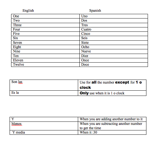 1.Chose Es la or Son las based on the hour
