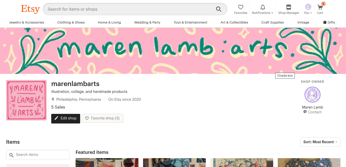 Screencaps of my Etsy shop: