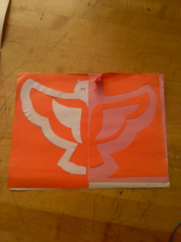 - In my cut out I cut out the shaded part of the picture and pasted it on a full paper, then used the rest of the picture, flipped it, and glued that to the other side of the full paper. In the drawing, I shaded in everything and erased out the shapes afterward.