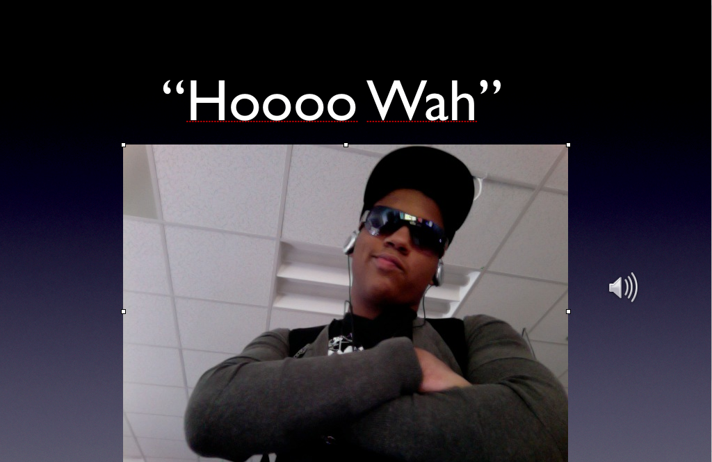 I changed my slide because there were too many words on it. I needed to make it simpler, so I did. On the new slide, I took what I thought was the best line from the old slide. Then, I put my name in white to contrast from the red and black theme. Also, I made the words bigger to pop out.