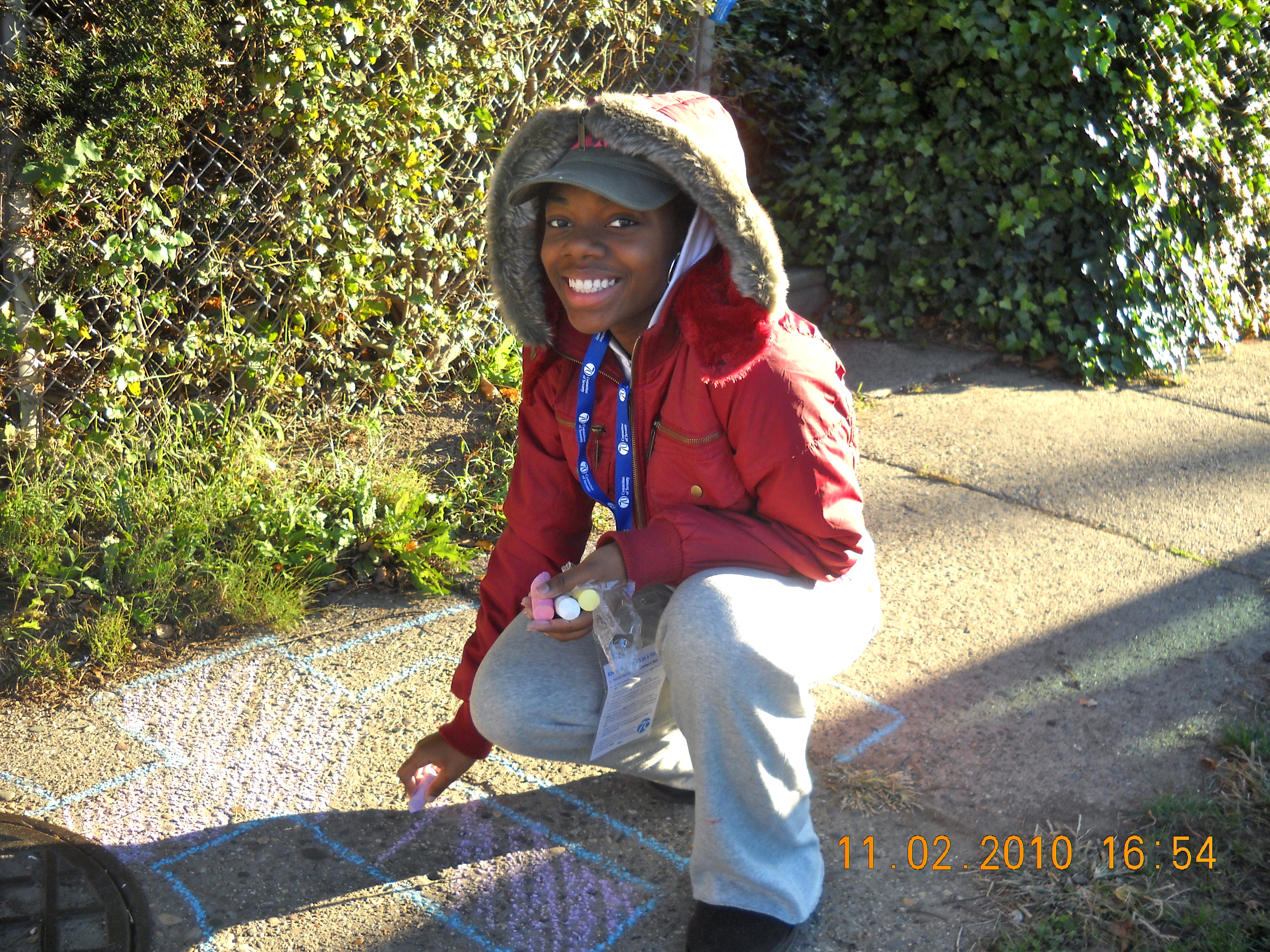 The awesome polling officials and librarians also let me chalk the sidewalk in front of the ramp that lead to the polls. I apologize it was extremely sunny this morning so I couldn't capture it as clearly I wanted to.