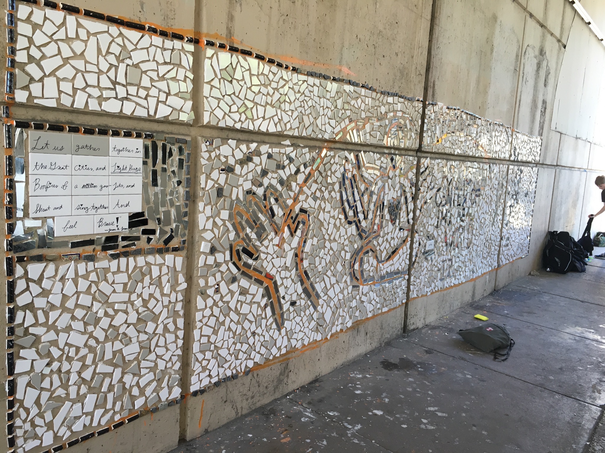 We would like to thank Isaiah Zagar and everyone else at the Philly Magic Gardens for allowing us to feel inspired by their work. We also want to thank Ms. Giknis, Ms. Giorgio, Srta. Manuel, and Ms. Johnson for buying us the supplies that allowed us to be awesome. A big thank you also goes out to Naima’s mother and Yaara for helping teach us how to cut glass, smash tiles, cement the tiles onto the wall, and grout the tiles. Another great thanks to Santucci’s Pizza for providing us with lunch.
