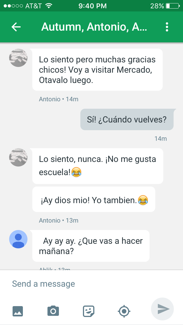 Leah: Me gusta pasear la calle y visitar a el teatro.