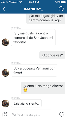 Ayala- ¡Hola! Veo tus fotos en instagram. ¡Me encanta mucho!