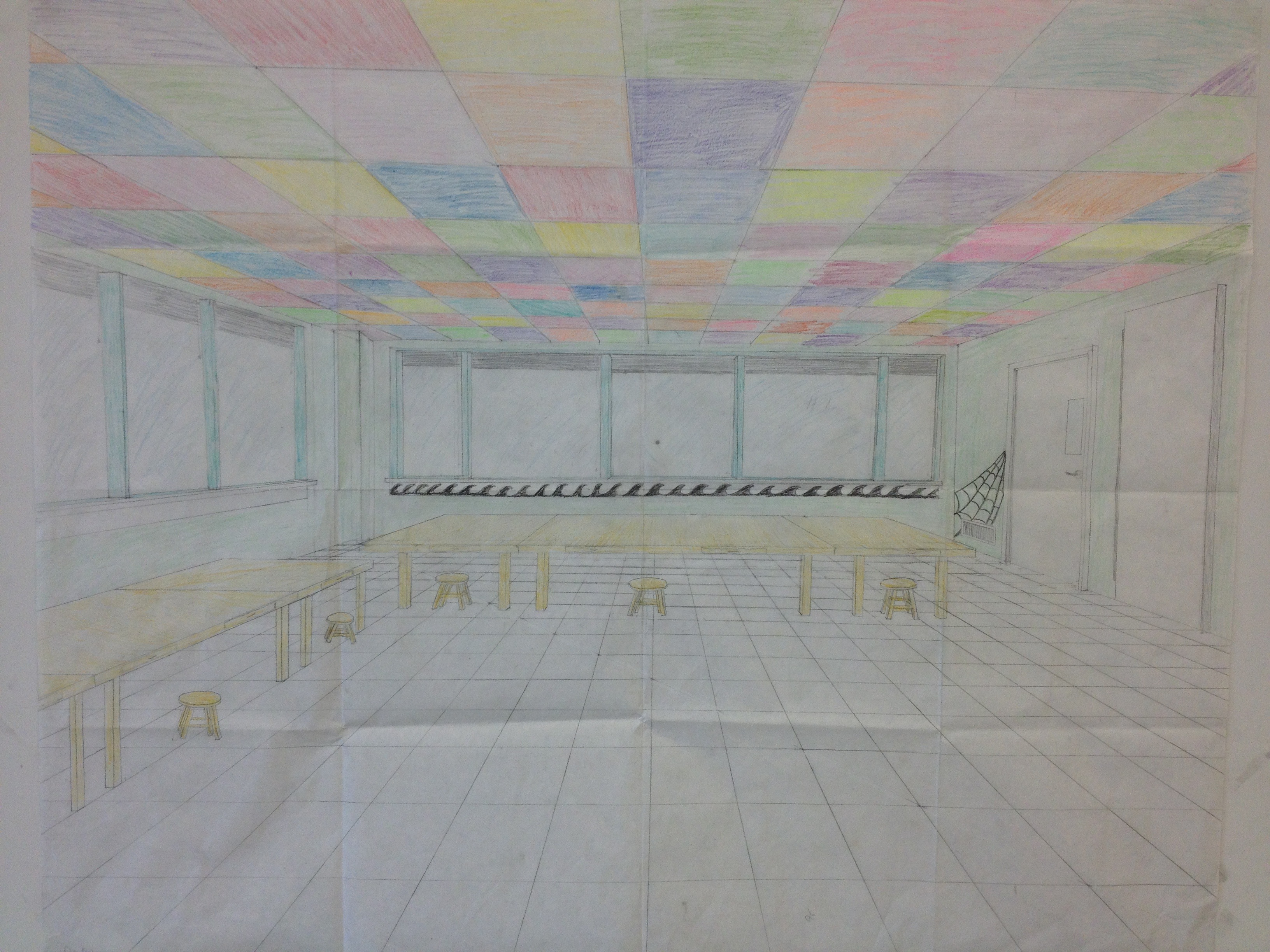 I learned how to draw realistic-looking ceiling and floor tiles using simple orthogonal lines. I also learned that using visual judgement, or your "artist's eye", you can make the proportions of a drawing a lot more realistic.b. How did learning this thing make your drawings better?