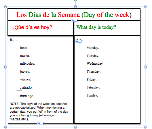 You are in wonderful,hot, and sunny Spain. But everyone speaks Spanish! You are going to be there for a while because you need to know when the markets open; so you need to find out the days of the week. Here is a quick easy chart.