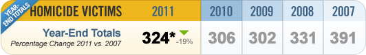 ·      In 2011 there was a total of 324 homicides in Philadelphia with a 20.7% homicide rate, which was more than any other large city.