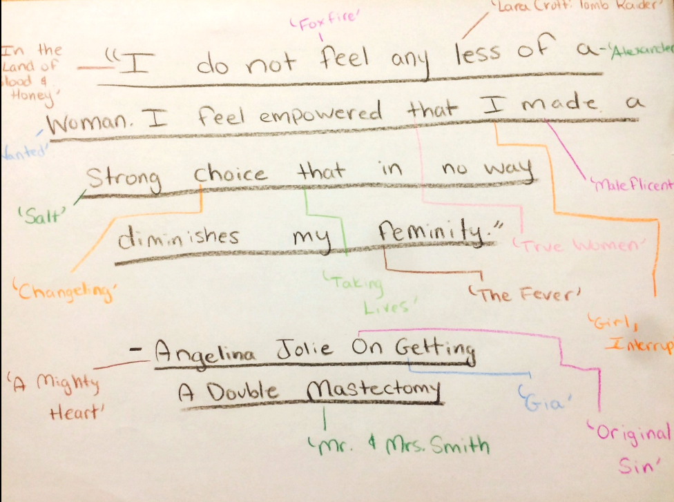 While many women and men have come together in many different ways in order to improve and give a positive impact towards gender equality. Many that are similar ways and many different. Jolie creates a positive impact in gender equality for she tells women that they can be free to be who they are. Jolie has many strong cores that she tries to show people in order to create equality. While her strongest and passion to show to women is for women to take control of their health and for no one to make them feel less like a women. Her second most strongest stance is to show women of all ages to not feel like they have to follow society's footsteps but that they can be different. For women to be who they strive to be. “I am writing about it now because I hope that other women can benefit from my experience. Cancer is still a word that strikes fear into people’s hearts, producing a deep sense of powerlessness. But today it is possible to find out through a blood test whether you are highly susceptible to breast and ovarian cancer, and then take action.” A quote that comes from Jolie, she wrote a piece about women and cancer titled “My Medical Choice” which then was published on ‘New York Times.’ Jolie has given women a new hope that shines through to get the right needed medical information they need in order to be healthy. While most women at first did not go through their health problems so much for it made them seem like womanly to others, at least that is how society has put it. Yet Jolie has taught that you must take care of yourself and nothing is wrong with that.