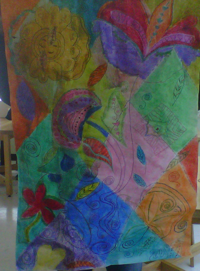 The tittle of my art work is "The Imaginary Garden" because its a picture of my imaginary garden brought to life. When I was younger my mom bought be a Vara Braley lunch bag, and it had all these weird looking flowers. So when i would go to sleep I'd have these dream of me being stuck in this strange gardn. Were every flower was bigger that I, everything was colorful and bright. This imaginary garden of mines had soon become a relaxing place for me so when ever i would have to go to the doctors to get a needle or when I watched a scary movie and could sleep I'd just always think of this garden and i'd be ok. So when thinking of a art project I though to myself to make it come to life.