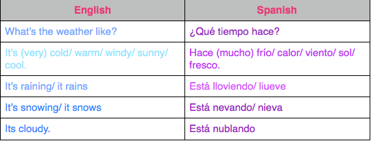 Ay dios mios! WEATHER! Posted by Tiarra Bell in Spanish 1 - Manuel on Friday, October 26, 2012 at 9:21 am Ay dios mios weather:In order to know the weather you need to know:Screen Shot 2012-10-26 at 9.20.16 AMScreen Shot 2012-10-25 at 8.41.06 AMHere is a video of Carlos describing the weather outside: Comments No comments have been posted yet. Log in to post a comment.