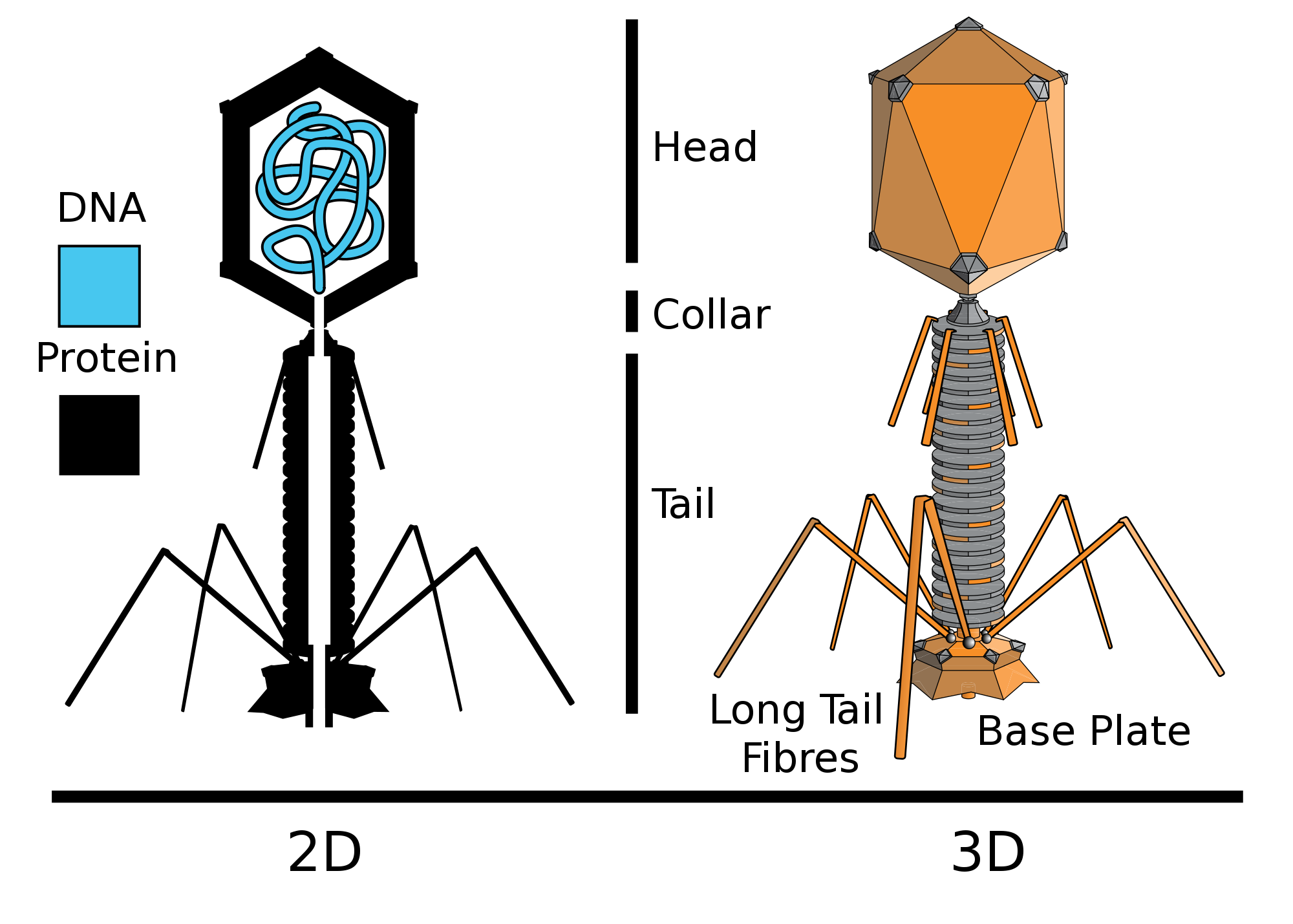 Viruses only do one thing: make more of themselves. Many viruses, such as bacteriophages, do this by consuming their host. The word "bacteriophage" is derived from "bacteria" and "phagein," which is Greek for "devour." The below image shows the anatomy of a bacteriophage.