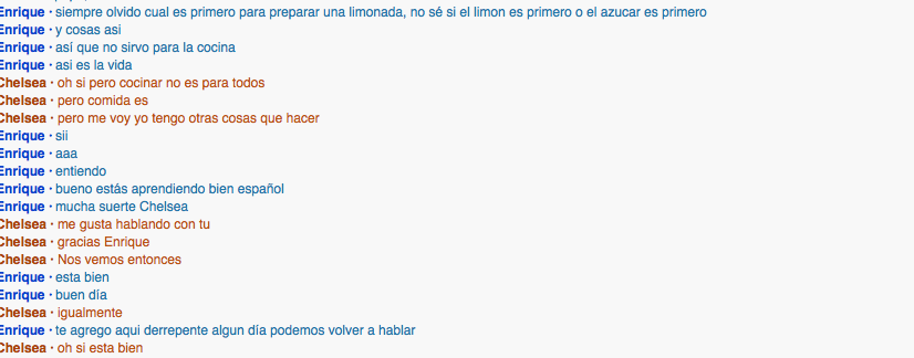 - I spoke with Enrique Matos and I picked him because he is from Peru and is trying to learn Spanish, as well as that he is 19 so close to our ages.What did you learn about them? What did you learn from them?