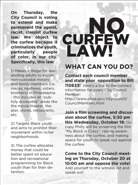 Here is a video from youtube talking about curfew in Philadelphia: VideoLink