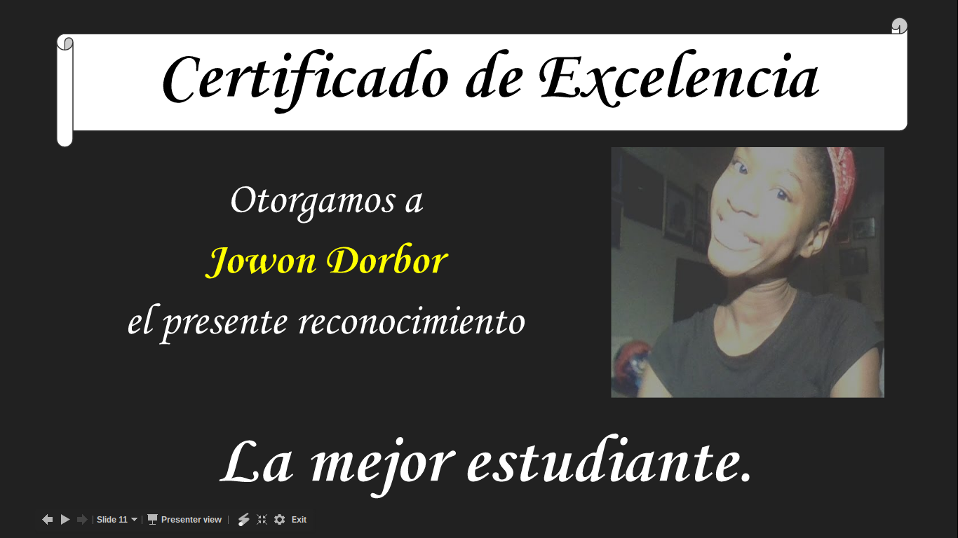 Certificado de Excelencia Posted by Jowon Dorbor in Spanish 2 · Hernandez · A Band on Wednesday, September 21, 2016 at 11:32 am Screenshot 2016-09-21 at 11.29.31 AM Comments No comments have been posted yet. Log in to post a comment.