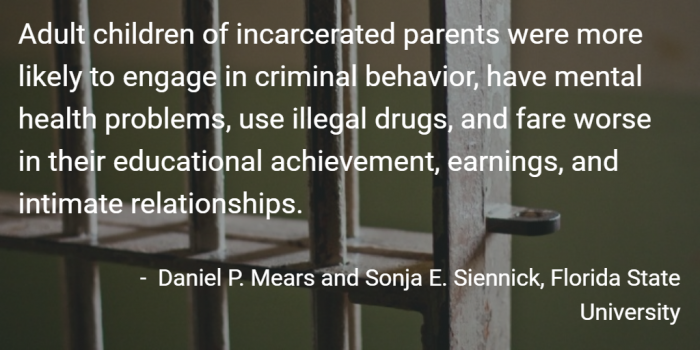 Written by Daniel P. Mears and Sonja E. Siennick from Florida State University, they reflect on adult children and how having an incarcerated parent affects their future.