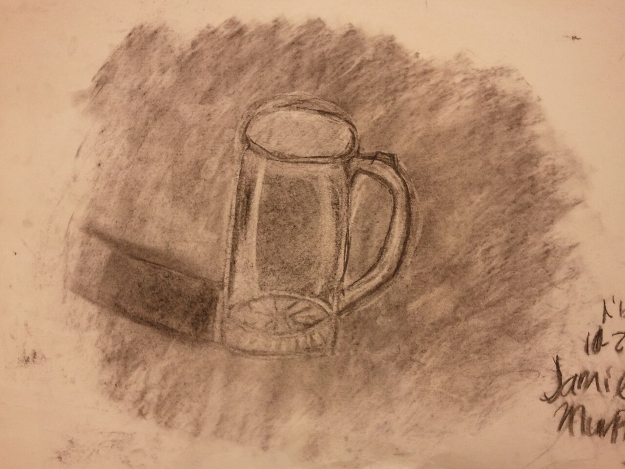 shading the charcoal and smoothing it over with my hand. I then drew the cup as