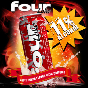 Four Loko es un producto del compañía Phusion Projects, inventado de tres ex-alumnos de la universidad de Ohio, y es muy popular entre jóvenes porque es vendido en latas gigantes, y tiene ambos alcohol y cafeína. También, es muy barato. Ese es importante, porque muchos jóvenes no tienen mucho dinero para la comprada de alcohol. Por eso, Four Loko es un “eficiente” método de emborrachándose: es largo, potente, barato, y la cafeína permite que bebedores pueden beber más y se emborrachan más antes de desmayando.