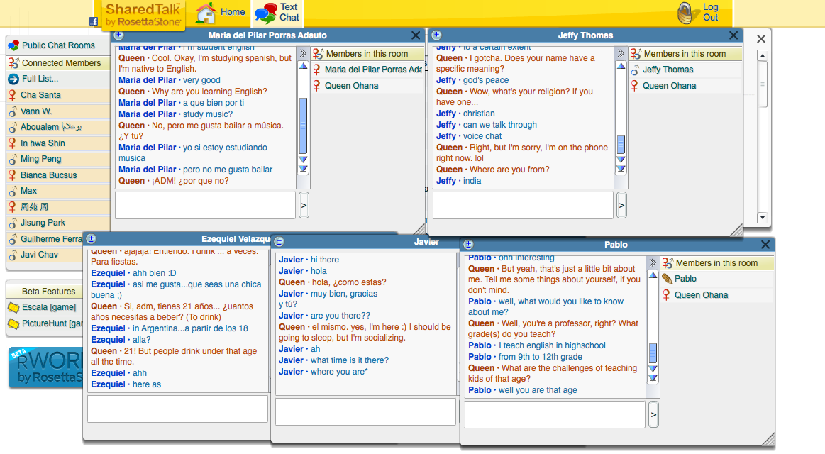 I spoke with tons of people on Sharedtalk. I just conversed with whoever messaged me and went from there. It's getting kind of hard to maintain a relationship with people, because we all have busy schedules, and emailing back and forth hasn't been consistent. But I made a new friend named Eric. We had a pretty nice conversation just about the things we like to do - without it seeming repetitive as before.