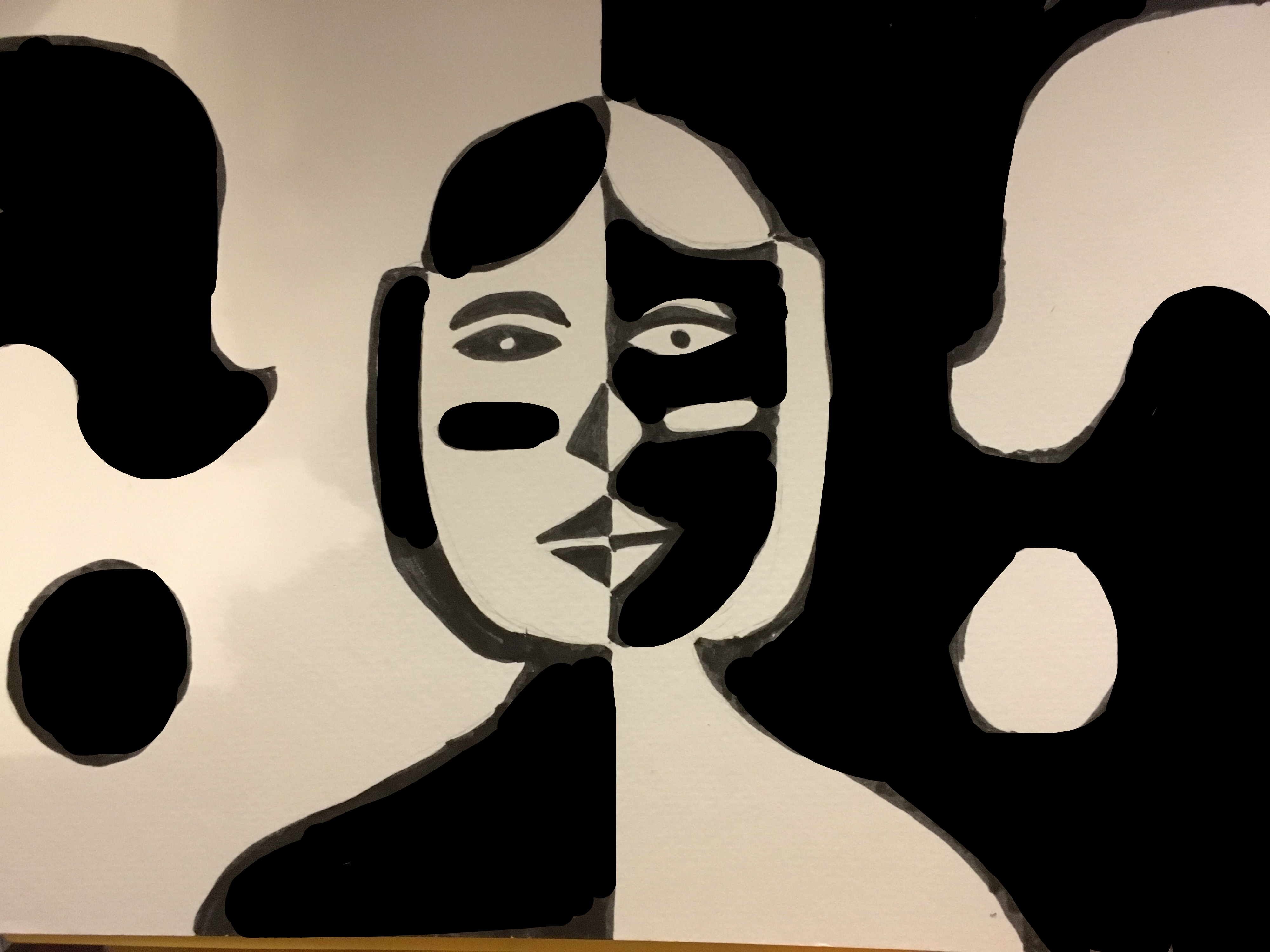 In my artwork, I depicted a person on two sides of lightness and darkness. It was to show how even the lighter side has some darkness that may affect the lighter side and vice versa. I created balance in this picture by splitting my original sketch in half and coloring all of the white space in. Doing this, I created a balance in my picture. From a peer, we discussed my drawing. Our discussion involved the use of white space and how I utilized the space I had on the piece of paper. I decided to keep the design simple in an effort to make the main point of the picture pop out.