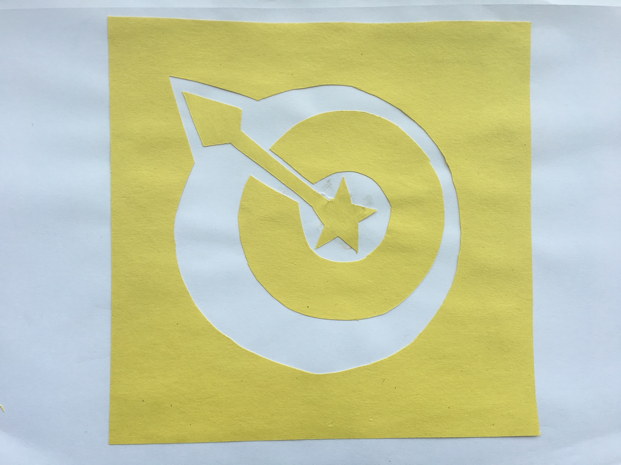 One part that I got stuck in was when I was about to cut out the positive and negative space. Then I realized that the arrow which was positive space ran into the strips that made up the target which was also positive space. I then decided to stop the strips before that encountered the strips. I created a negative out layer around the arrow and the star.