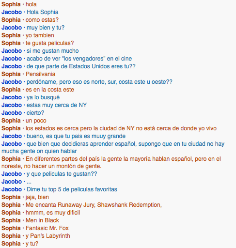 I spoke to Jacobo from Mexico. He was 26. I didn't choose him but he started talking to me and it worked out.